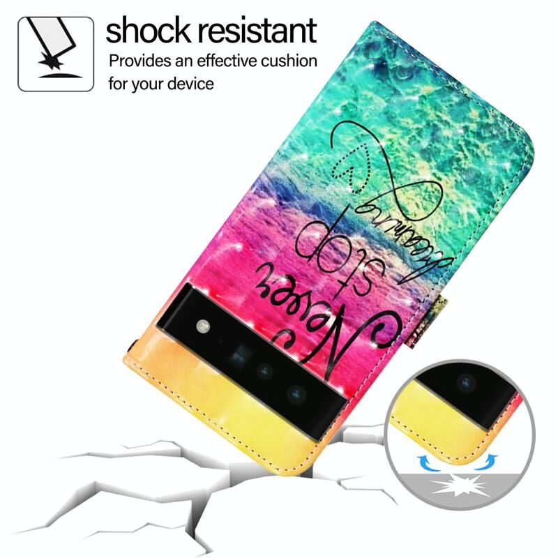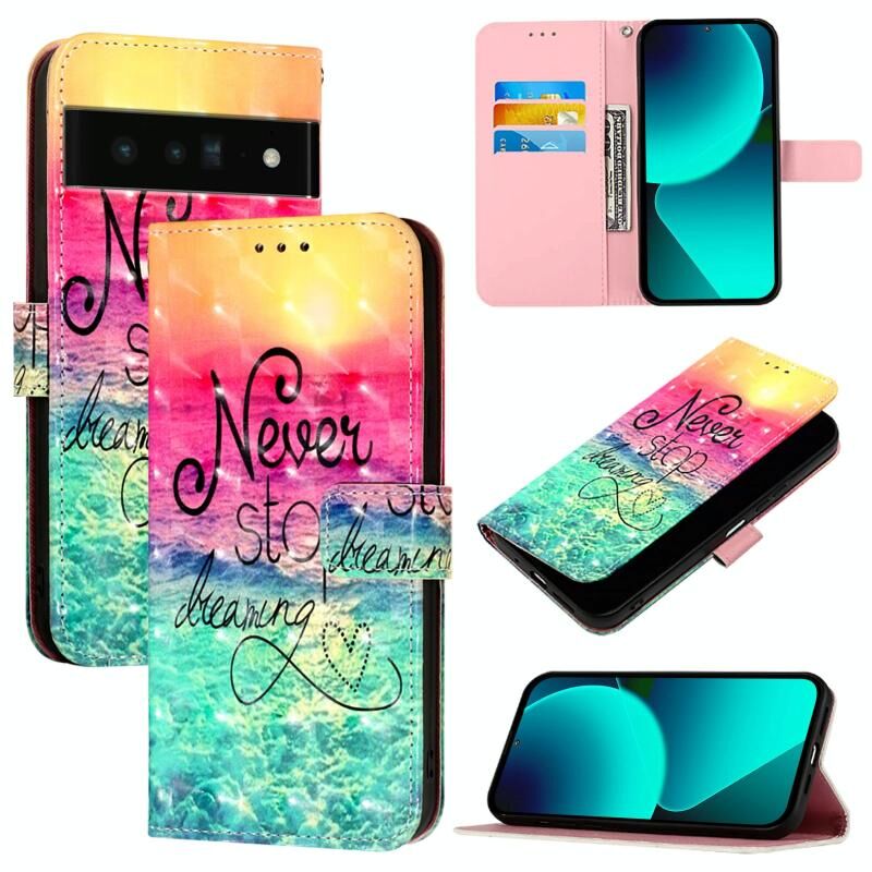 Θήκη τηλεφώνου από δέρμα με οριζόντια αναδίπλωση και τρισδιάστατη ζωγραφική για Google Pixel 6 Pro (Κυνηγώντας Όνειρα)