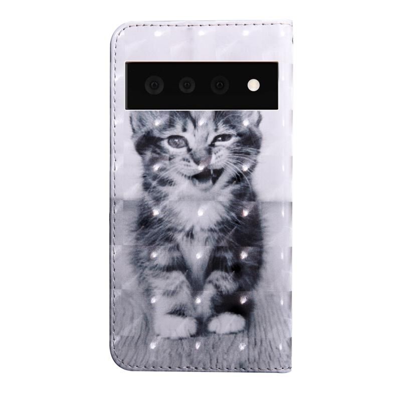 Θήκη τηλεφώνου από δέρμα με έγχρωμο σχέδιο 3D ζωγραφικής για Google Pixel 6 Pro (Γάτα)