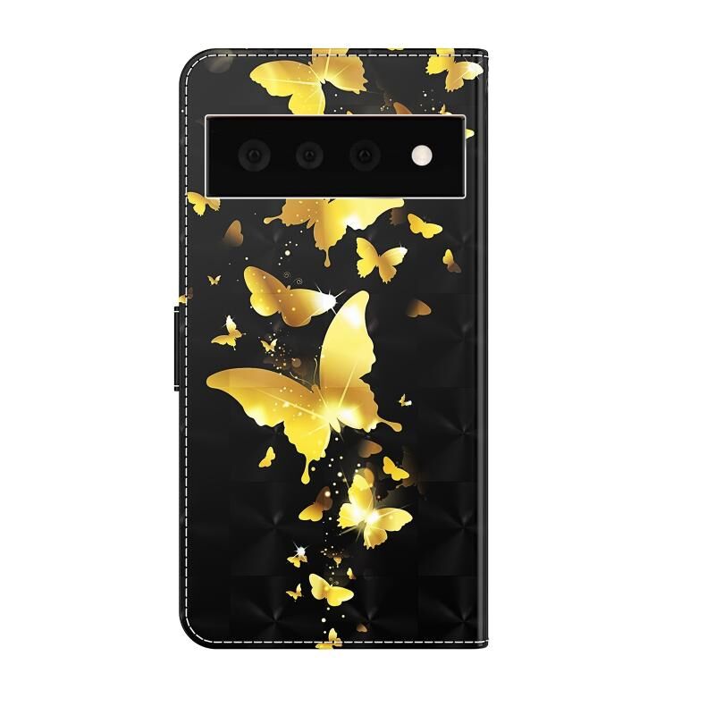 Θήκη τηλεφώνου για Google Pixel 6 Pro, 3D σχέδιο ζωγραφικής, TPU + Δερμάτινη PU (Χρυσή Πεταλούδα)
