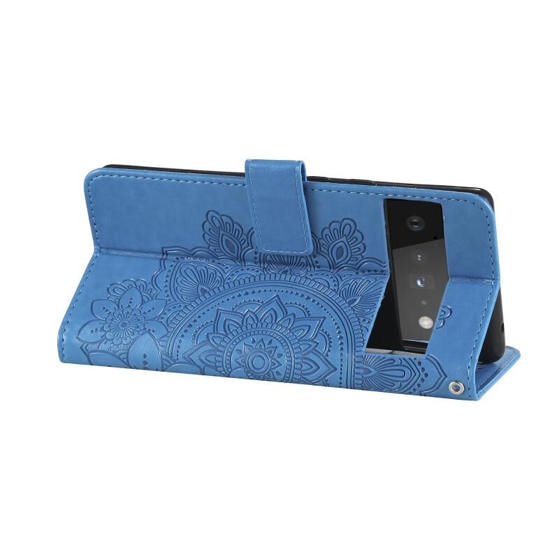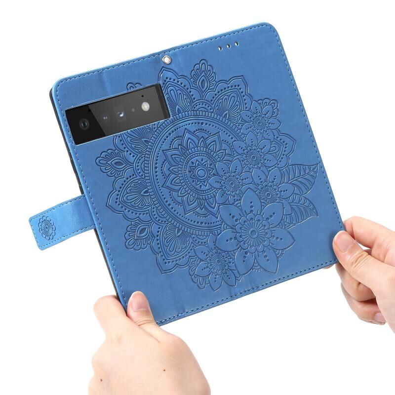 Για το Google Pixel 6 Pro 7-πέταλο λουλούδια ανάγλυφο μοτίβο οριζόντια Flip PU δέρμα υπόθεση με θήκη & υποδοχές για κάρτες & πορτοφόλι & πλαίσιο φωτογραφιών (μπλε)
