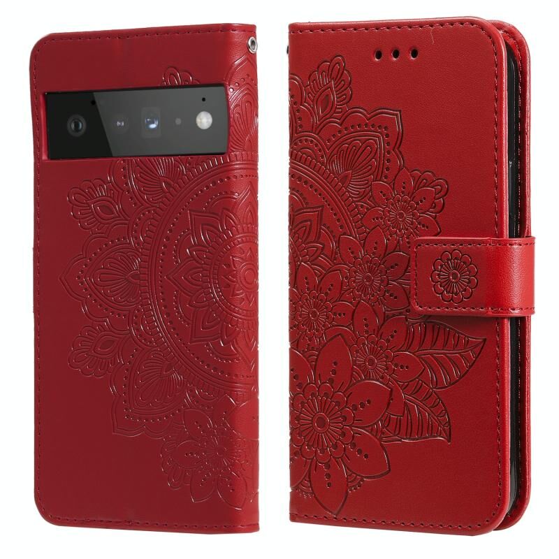 Για το Google Pixel 6 Pro 7-πέταλο λουλούδια ανάγλυφο μοτίβο οριζόντια Flip PU δέρμα υπόθεση με θήκη & υποδοχές για κάρτες & πορτοφόλι & πλαίσιο φωτογραφιών (κόκκινο)