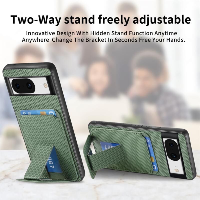 For Google Pixel 6 Pro Carbon Fiber Card Bag Fold Stand Phone Case(Green)