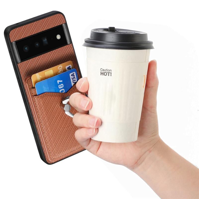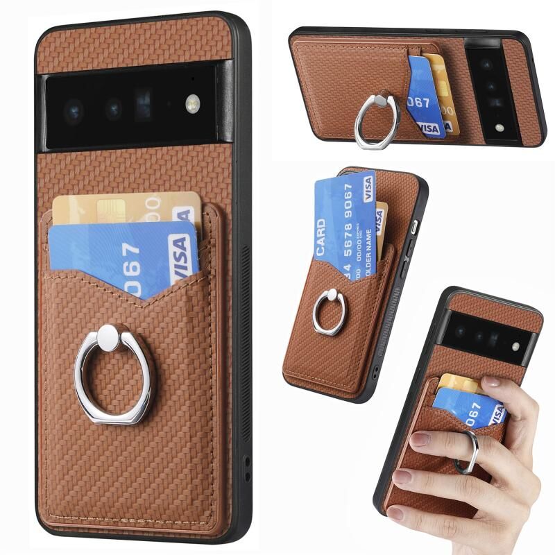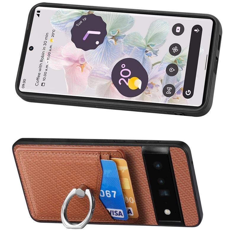 Θήκη τηλεφώνου για Google Pixel 6 Pro από ανθρακονήματα με κάρτες και δακτύλιο στήριξης (Μαύρο)