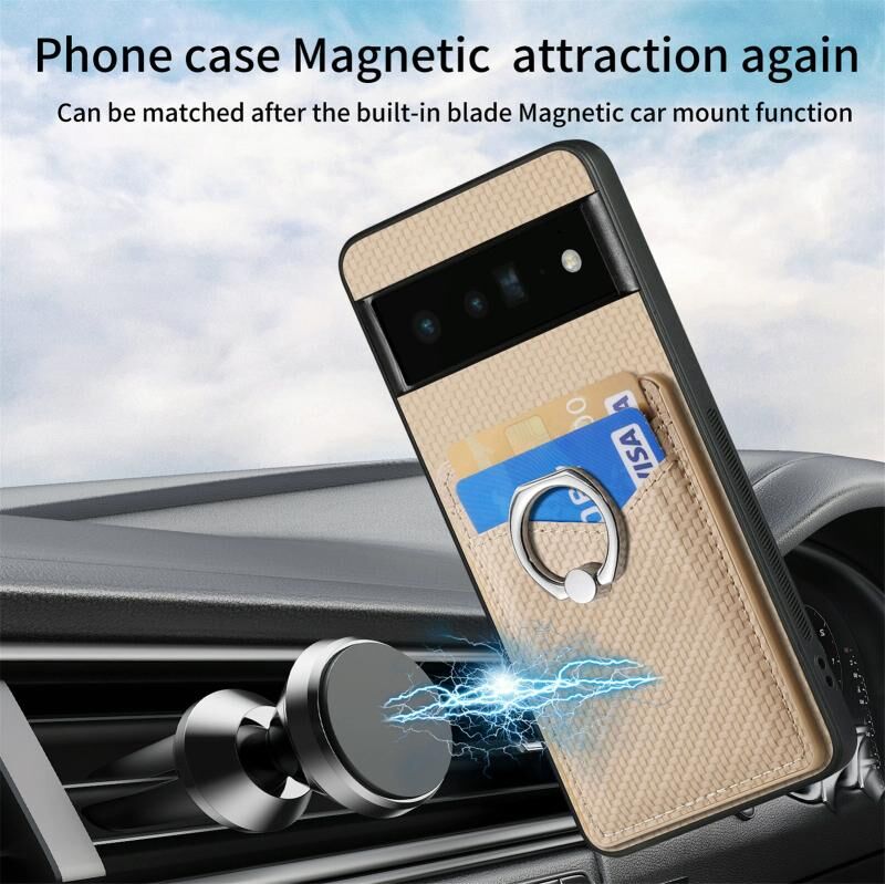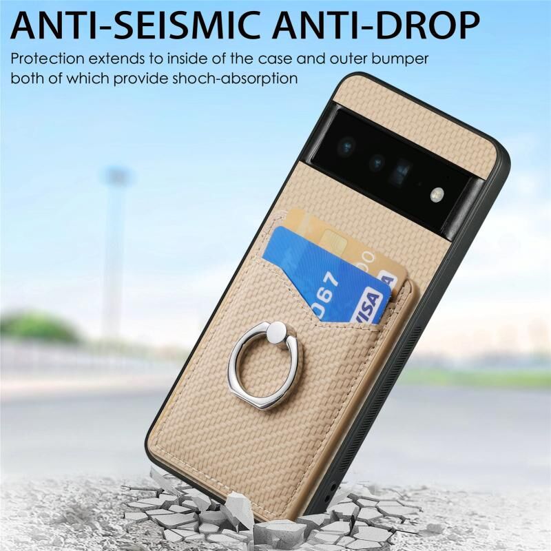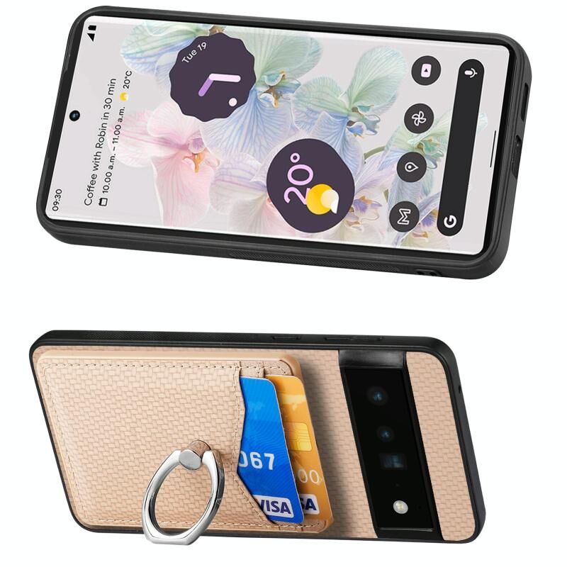 Θήκη τηλεφώνου για Google Pixel 6 Pro από ανθρακονήματα με κάρτες και δακτύλιο στήριξης (Μαύρο)