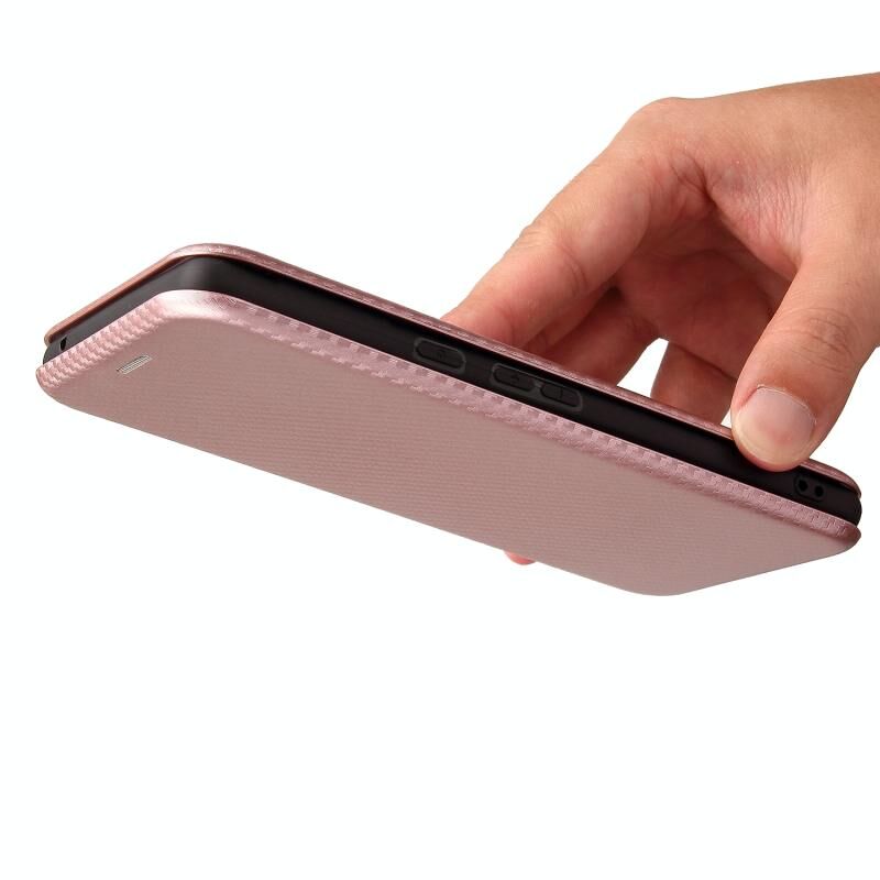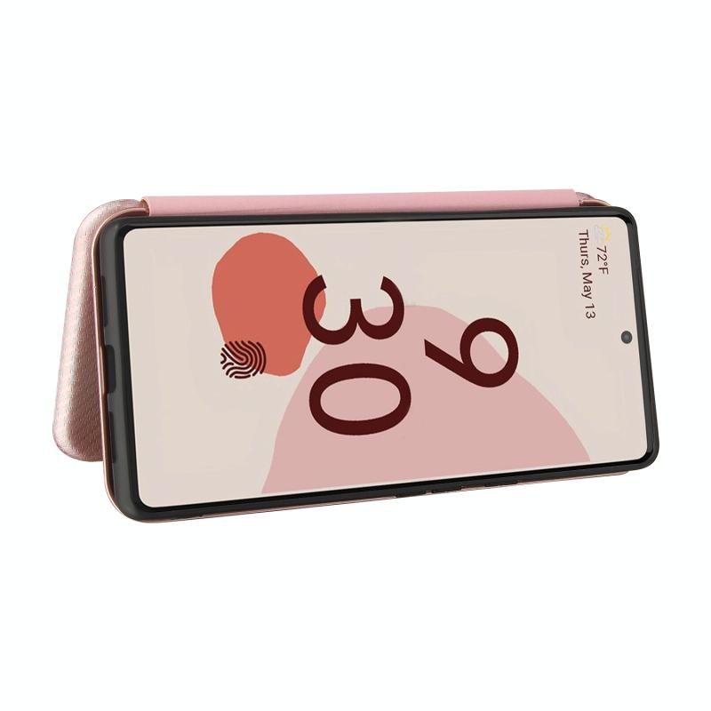 For Google Pixel 6 Pro Carbon Fiber Texture Horizontal Flip TPU + PC + PU Leather Case with Card Slot(Pink)