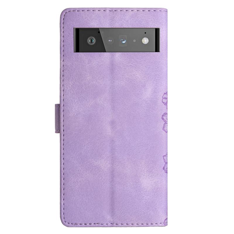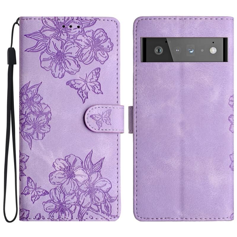 For Google Pixel 6 Pro Cherry Blossom Butterfly Skin Feel Embossed PU Phone Case(Purple)
