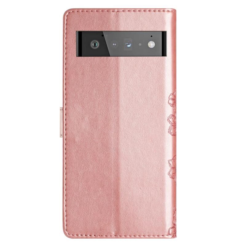 For Google Pixel 6 Pro Cherry Blossom Butterfly Skin Feel Embossed PU Phone Case(Rose Gold)