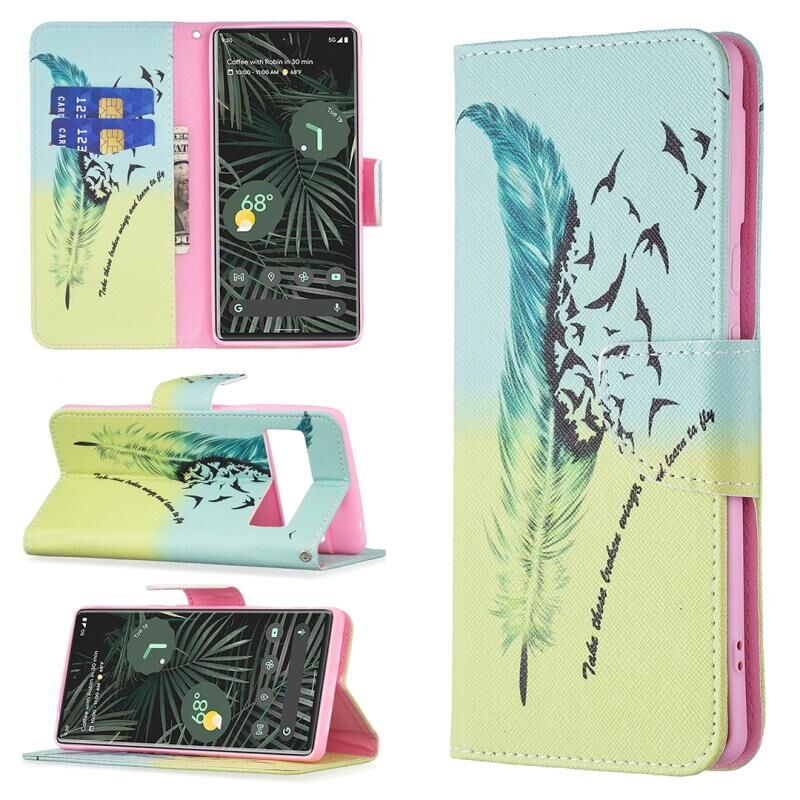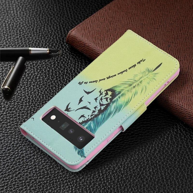 Θήκη δέρματος για Google Pixel 6 Pro με έγχρωμο σχέδιο, οριζόντιο άνοιγμα, με βάση στήριξης & θήκες για κάρτες & πορτοφόλι (Φτερό)