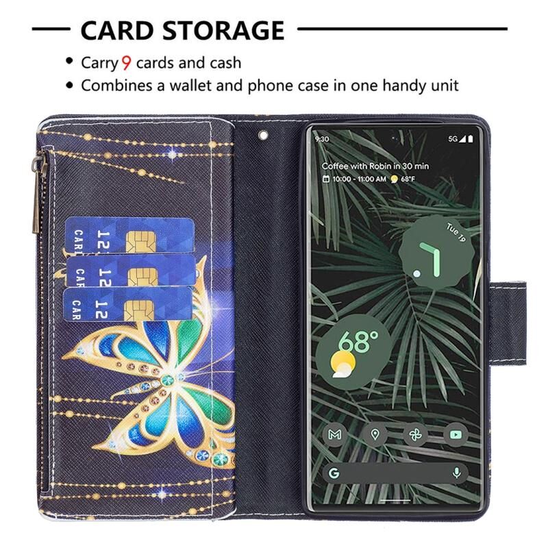 For Google Pixel 6 Pro Colored Drawing Pattern Zipper Horizontal Flip Phone Leather Case with Holder & Card Slots & Wallet(Big Butterfly)