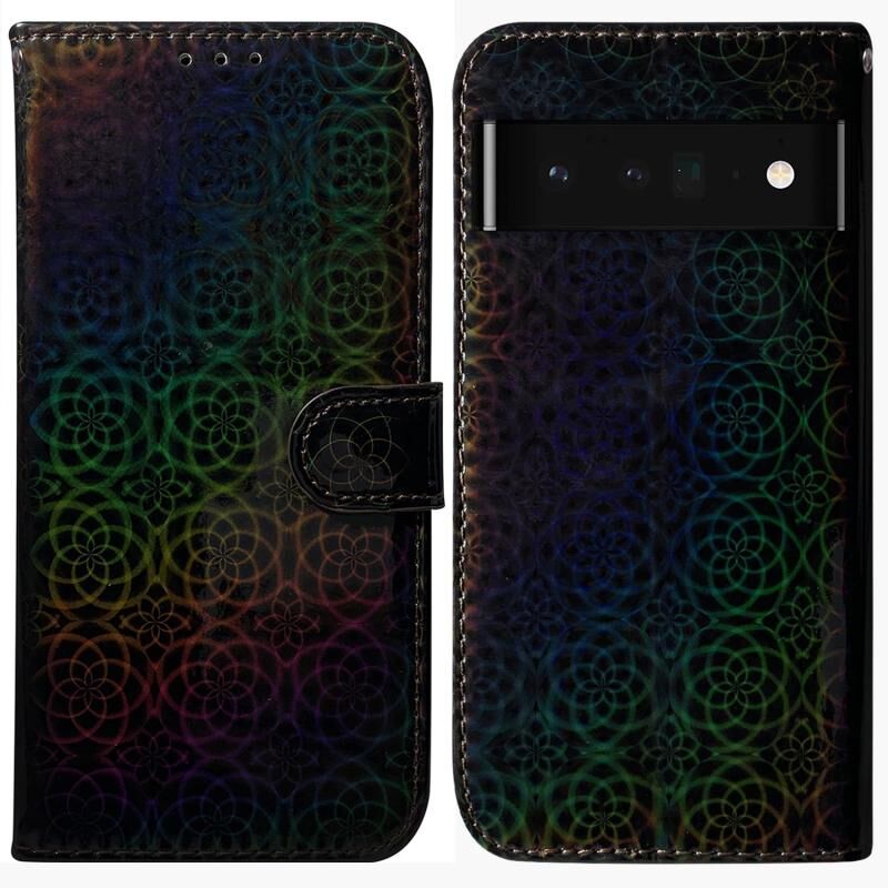 Για το Google Pixel 6 Pro Πολύχρωμη μαγνητική θήκη τηλεφώνου με δερμάτινη πόρπη (Μαύρο)