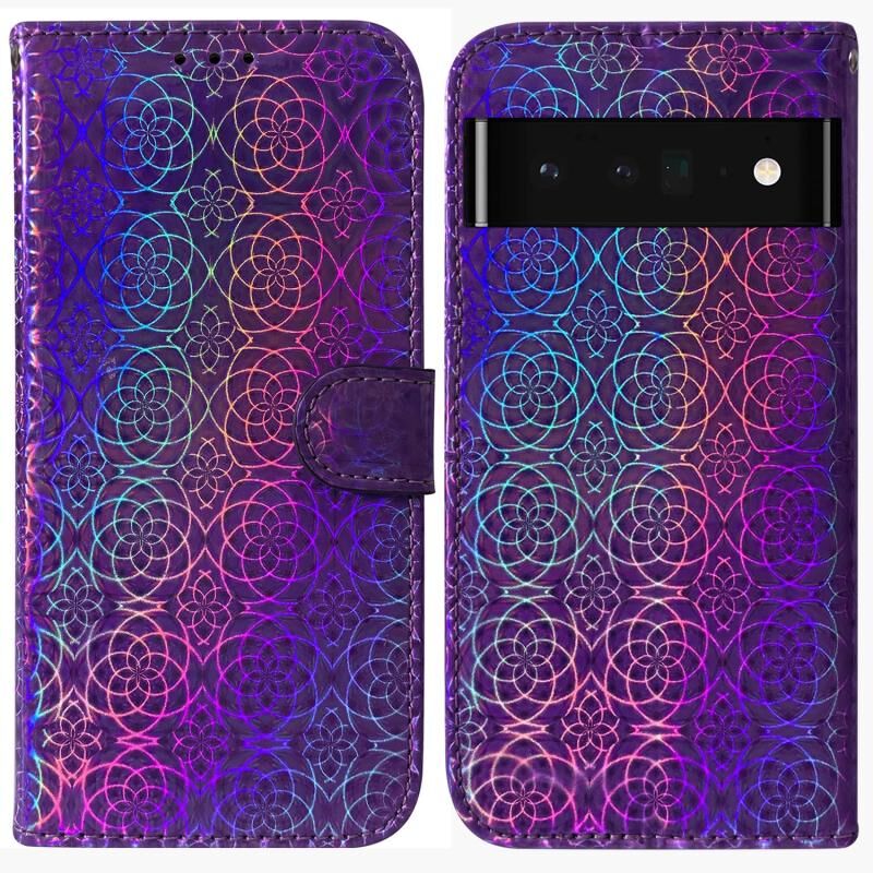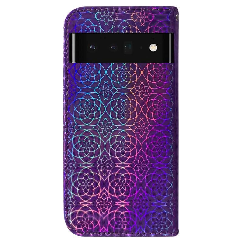 Για το Google Pixel 6 Pro Πολύχρωμο μαγνητική πόρπη δερμάτινη θήκη τηλεφώνου (μωβ)