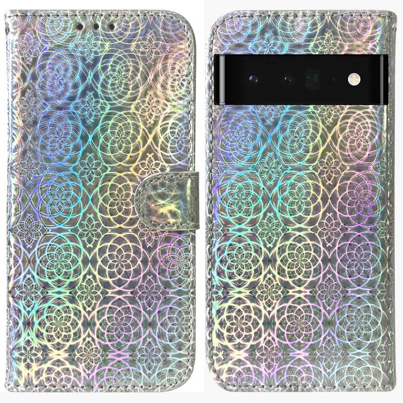 Για το Google Pixel 6 Pro Πολύχρωμο μαγνητική πόρπη δερμάτινη θήκη τηλεφώνου (ασημί)