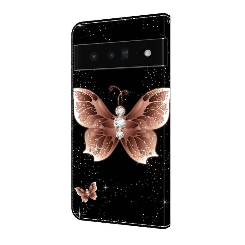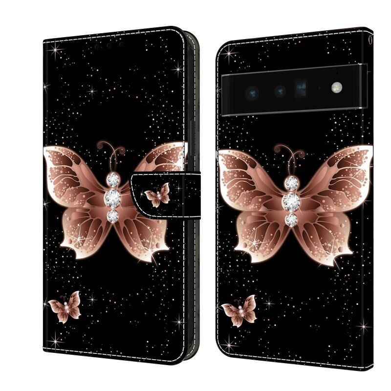 Θήκη κινητού τηλεφώνου από δέρμα, αντικραδασμική, προστατευτική 3D κρυστάλλου για Google Pixel 6 Pro (Ροζ πεταλούδα στο κάτω μέρος)