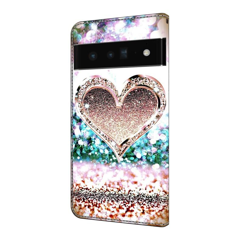 Θήκη κινητού τηλεφώνου από δέρμα, αντικραδασμική, προστατευτική 3D κρυστάλλου για Google Pixel 6 Pro (Ροζ πεταλούδα στο κάτω μέρος)