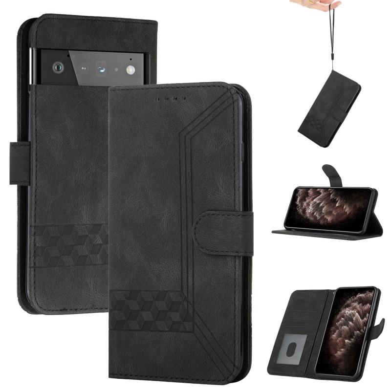 For Google Pixel 6 Pro Cubic Skin Feel Flip Leather Phone Case(Black)