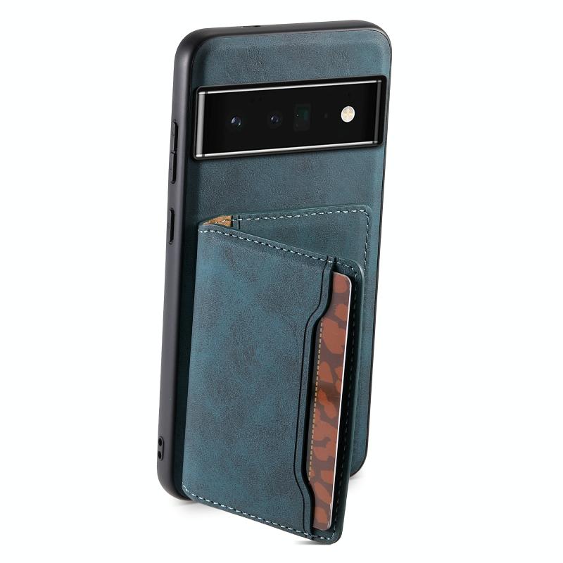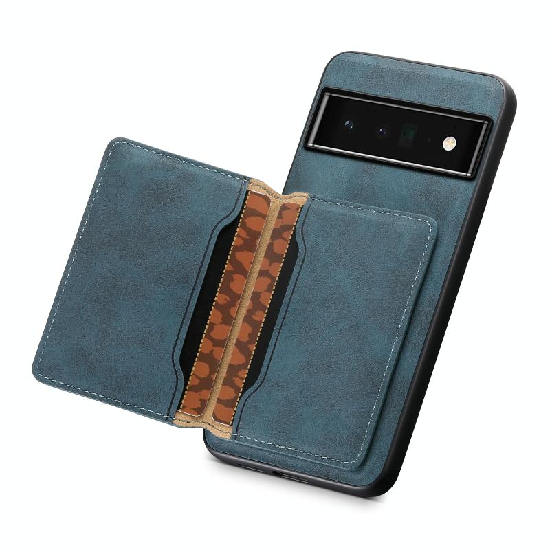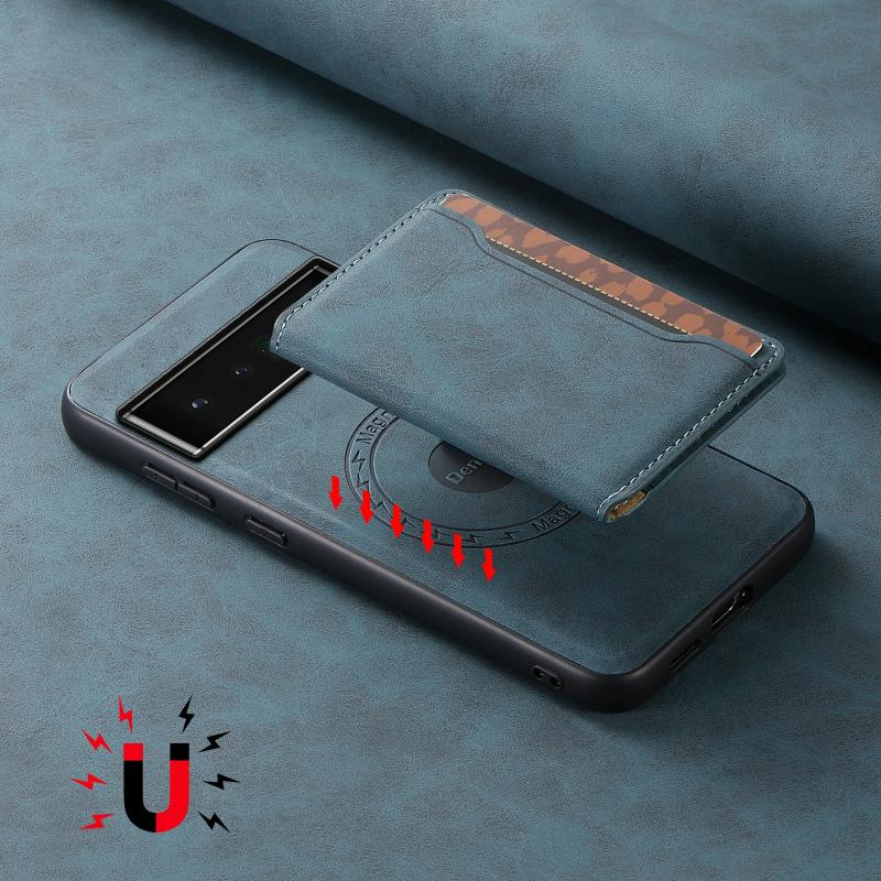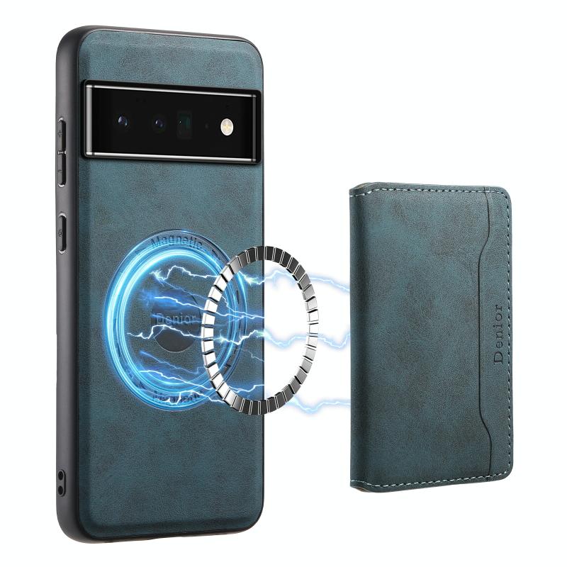 For Google Pixel 6 Pro Denior D13 Retro Texture Leather MagSafe Card Bag Phone Case(Blue) (Denior)