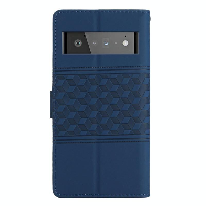 Για το Google Pixel 6 Pro Diamond Embossed Skin Feel Δερμάτινη θήκη τηλεφώνου με κορδόνι (σκούρο μπλε)