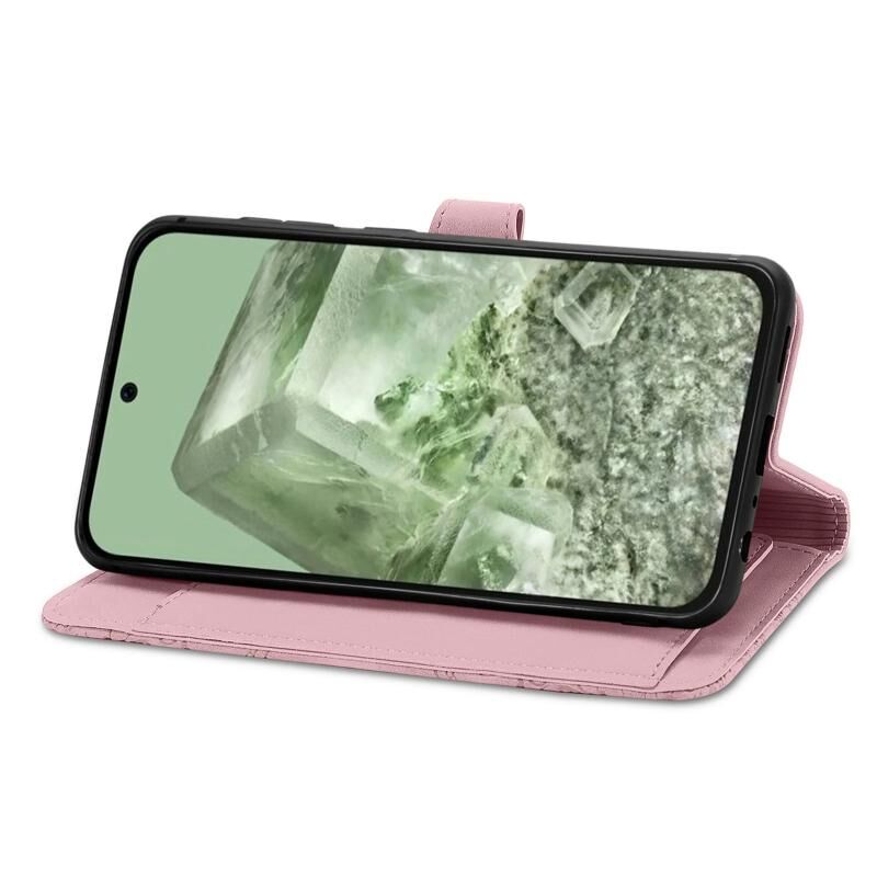 Για το Google Pixel 6 Pro ανάγλυφο λουλούδι φερμουάρ δερμάτινη θήκη τηλεφώνου (ροζ)