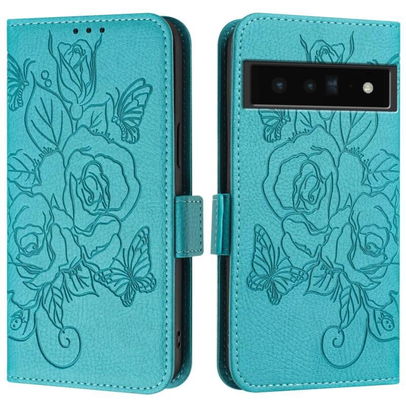 For Google Pixel 6 Pro Embossed Rose RFID Anti-theft Leather Phone Case(Light Blue)