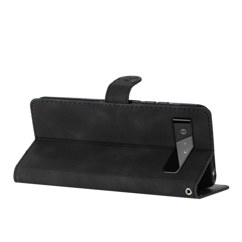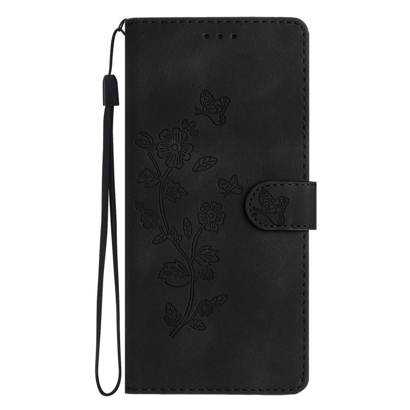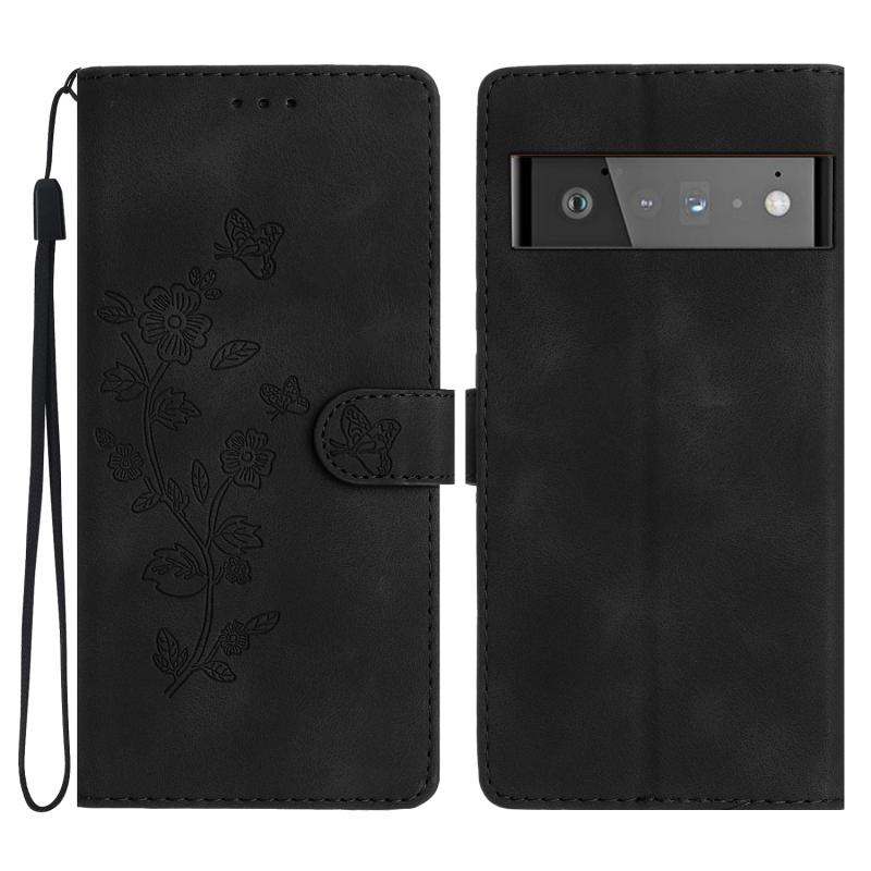 Θήκη τηλεφώνου δερμάτινη με ανάγλυφο σχέδιο λουλουδιών και πεταλούδας για Google Pixel 6 Pro (Μαύρο)