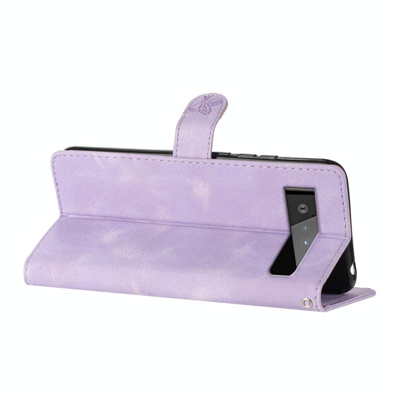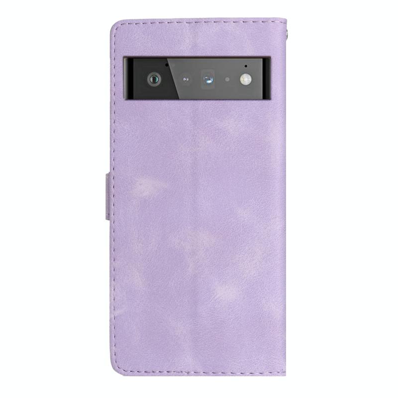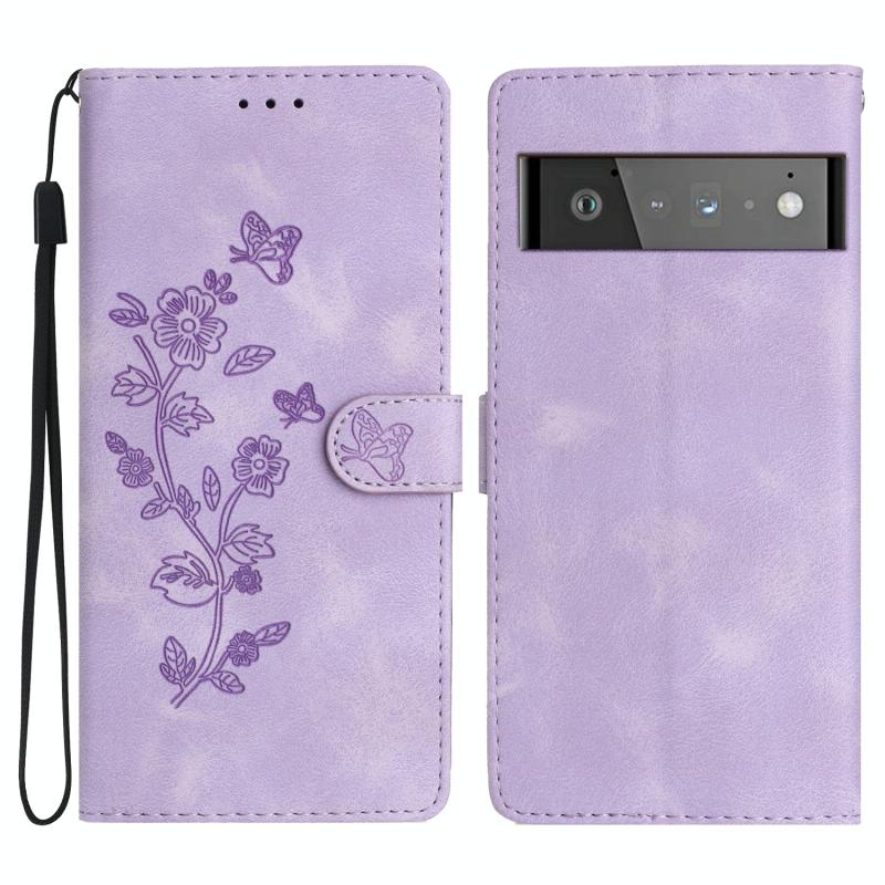 Θήκη τηλεφώνου δερμάτινη με ανάγλυφο σχέδιο λουλουδιών και πεταλούδας για Google Pixel 6 Pro (Μαύρο)