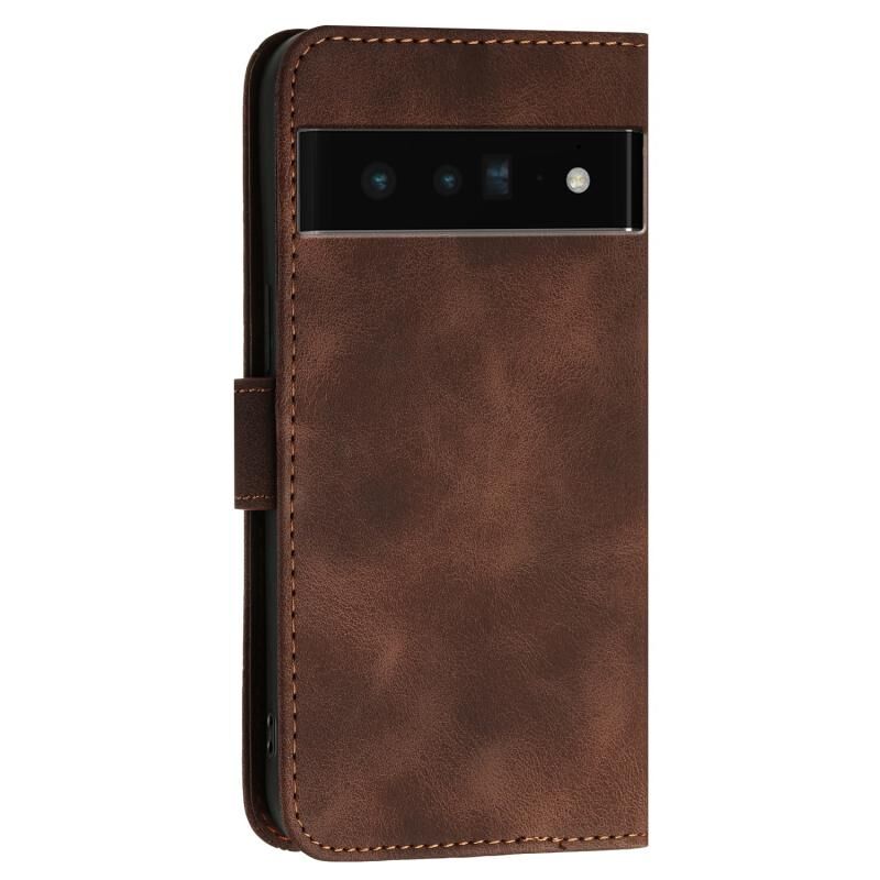 Θήκη τηλεφώνου δερμάτινη με ανάγλυφο σχέδιο πεταλούδας σε πλέγμα για Google Pixel 6 Pro με κορδόνι (Καφέ)