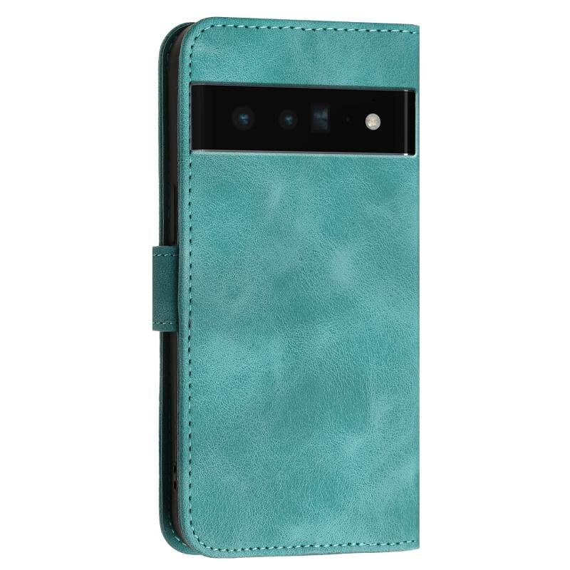 Θήκη τηλεφώνου από δέρμα με ανάγλυφο σχέδιο πεταλούδας σε πλέγμα για Google Pixel 6 Pro με κορδόνι (Σκούρο Μπλε)