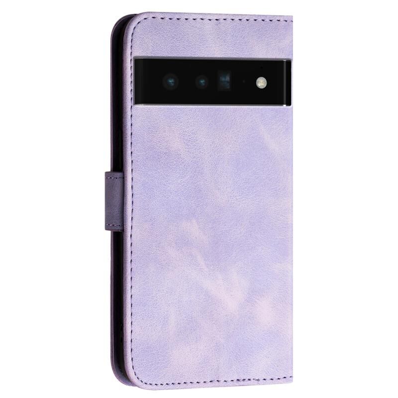 Θήκη τηλεφώνου από δέρμα με ανάγλυφο σχέδιο πεταλούδας σε πλέγμα για Google Pixel 6 Pro με κορδόνι (Σκούρο Μπλε)
