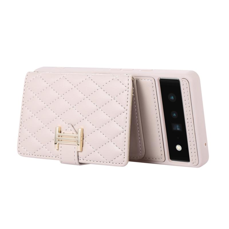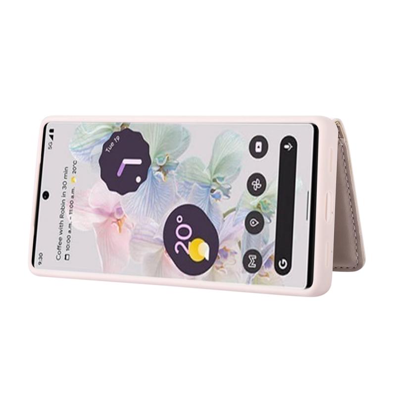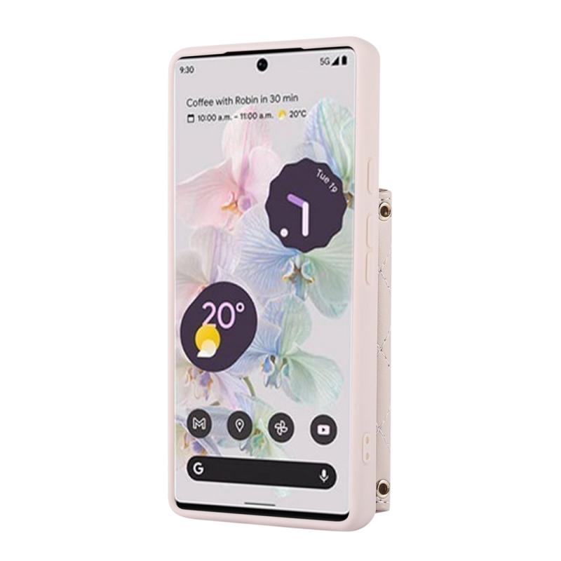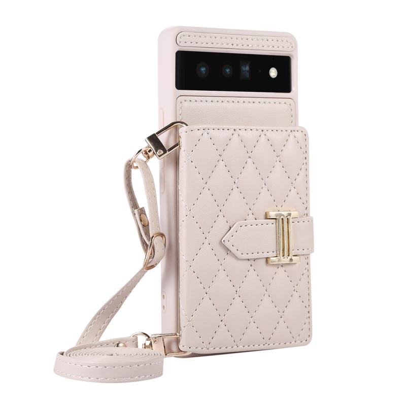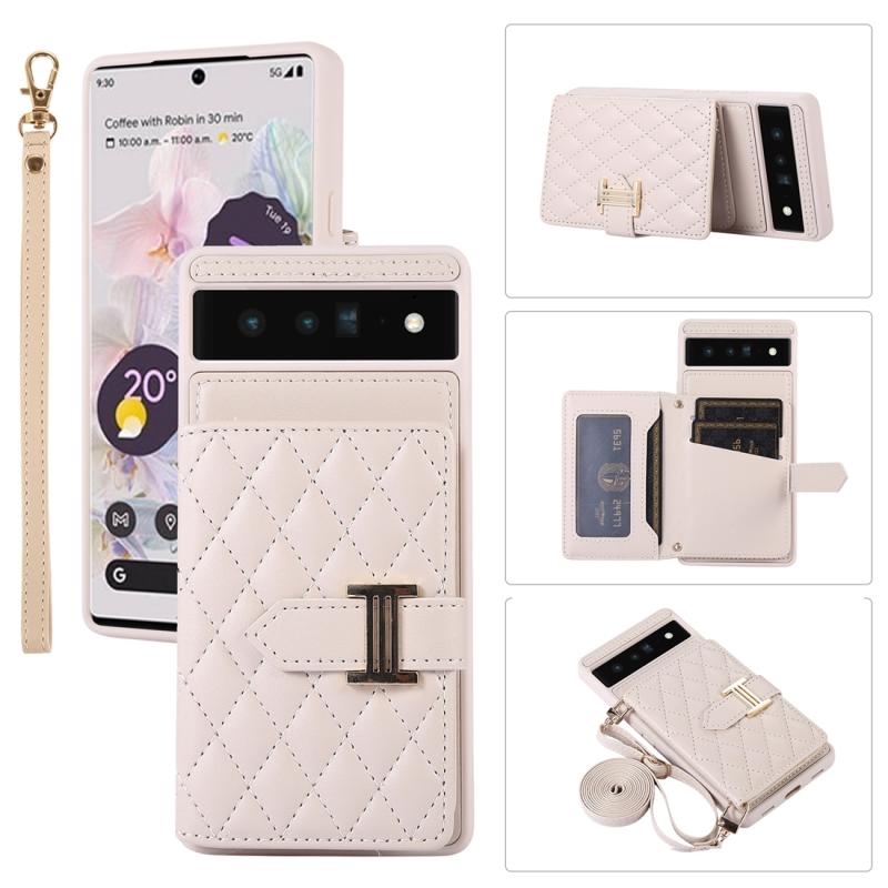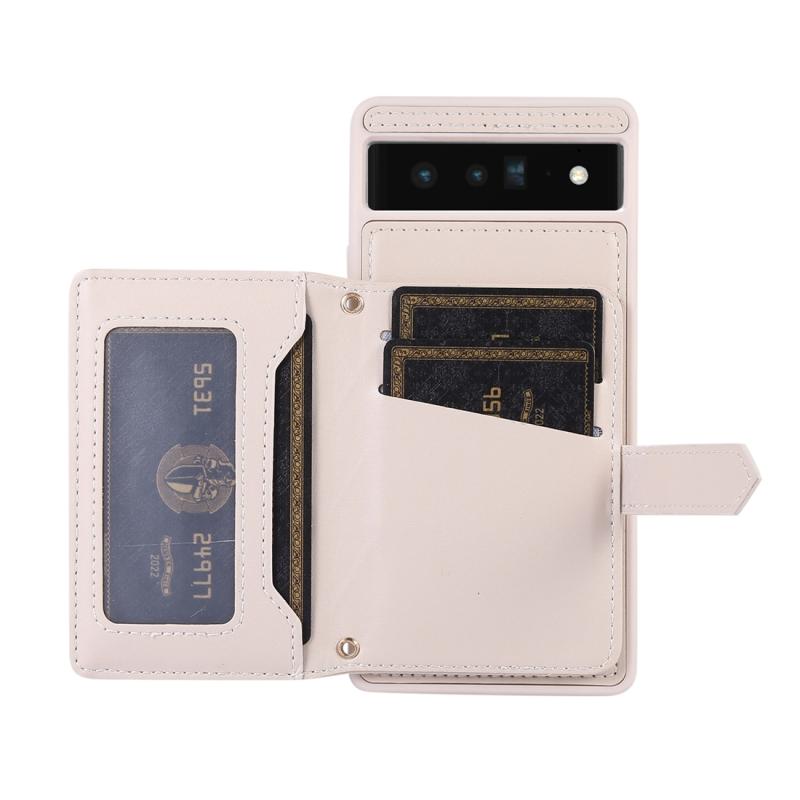 For Google Pixel 6 Pro Horizontal Card Bag Phone Case with Dual Lanyard(Beige)