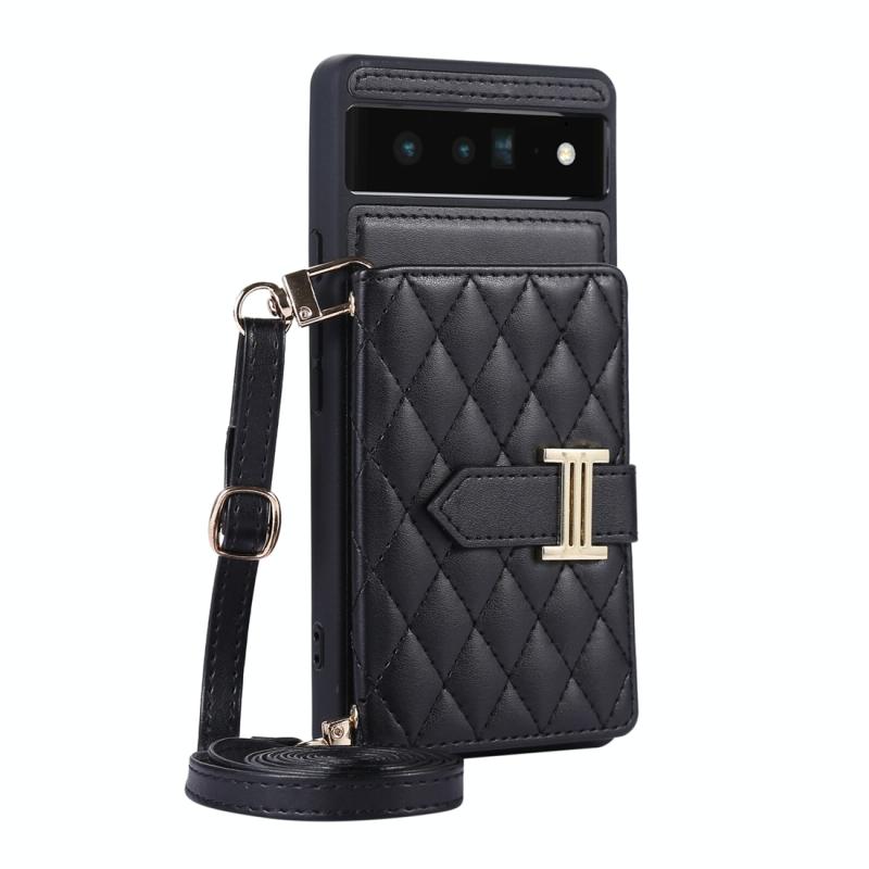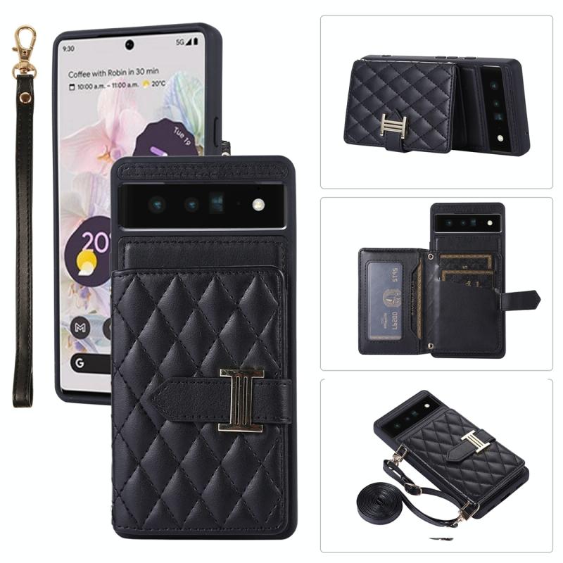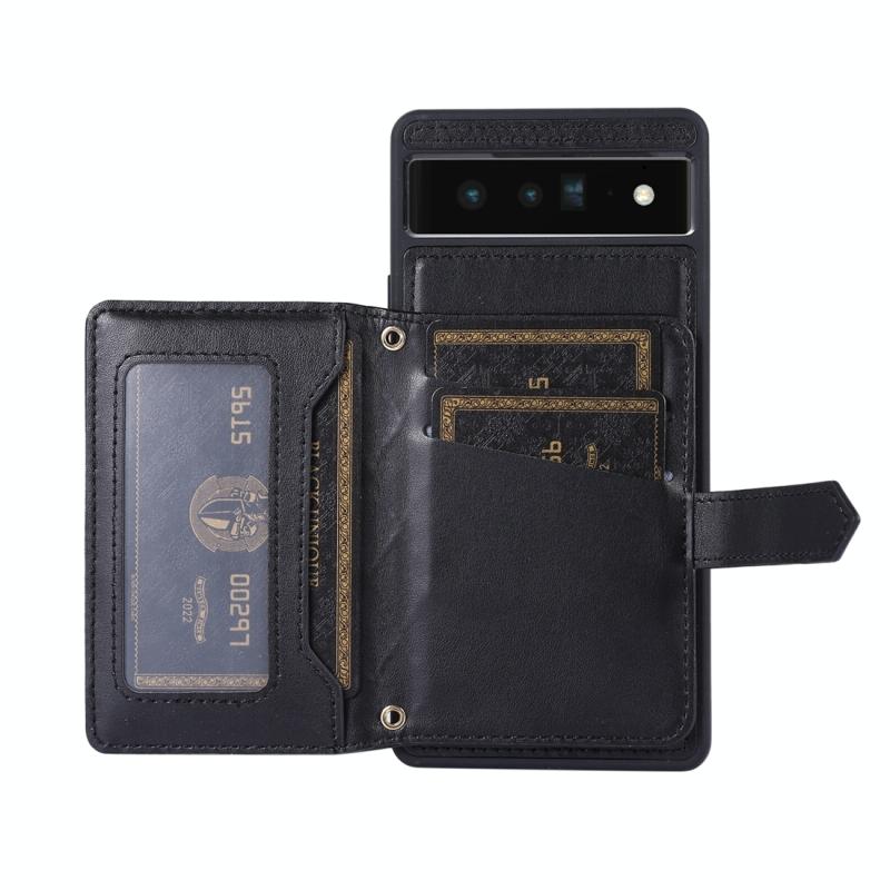 For Google Pixel 6 Pro Horizontal Card Bag Phone Case with Dual Lanyard(Black)