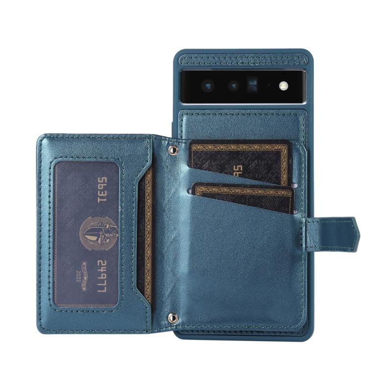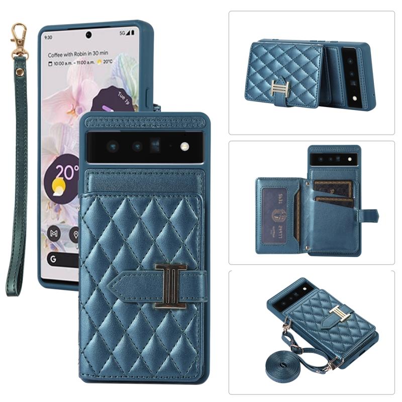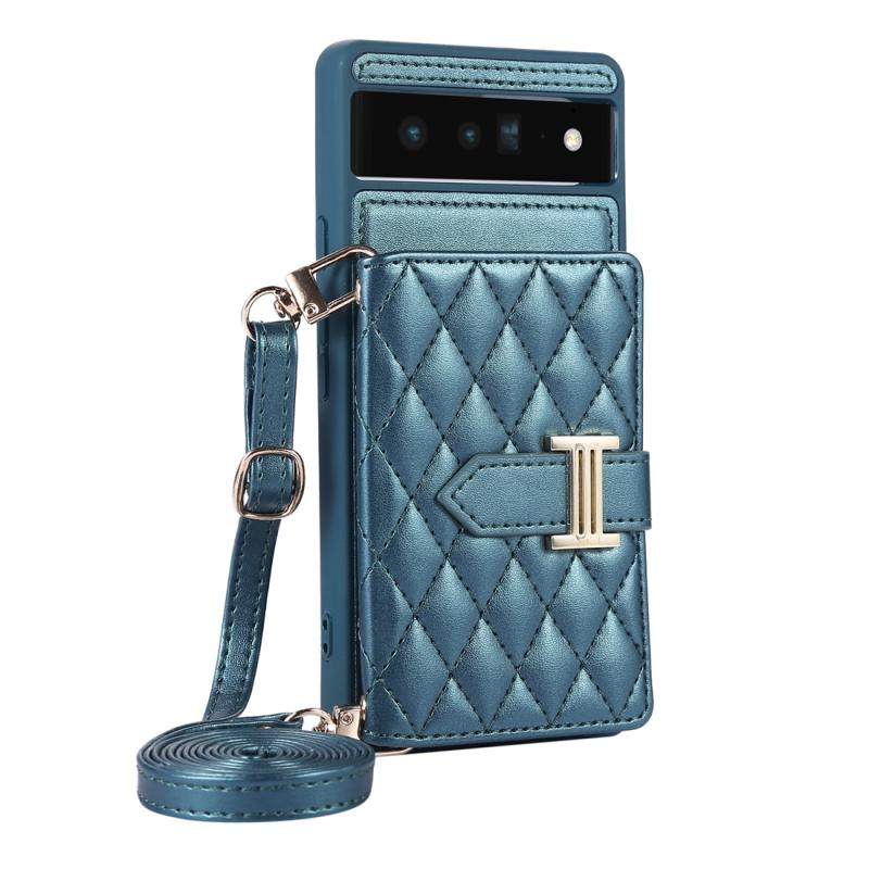 For Google Pixel 6 Pro Horizontal Card Bag Phone Case with Dual Lanyard(Dark Green)