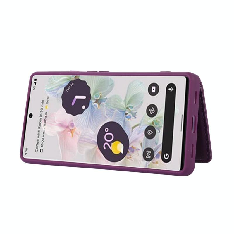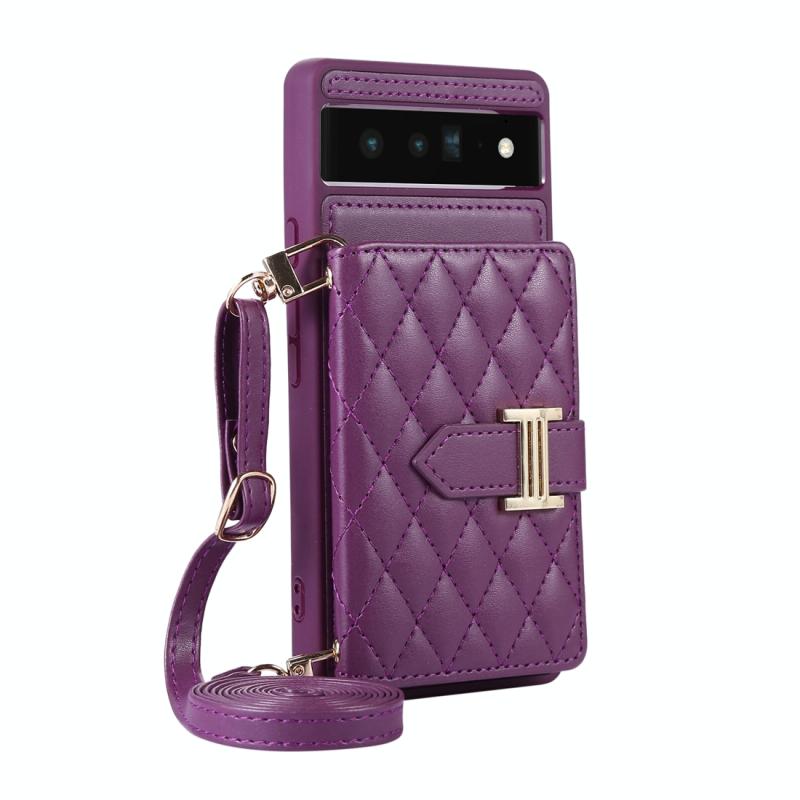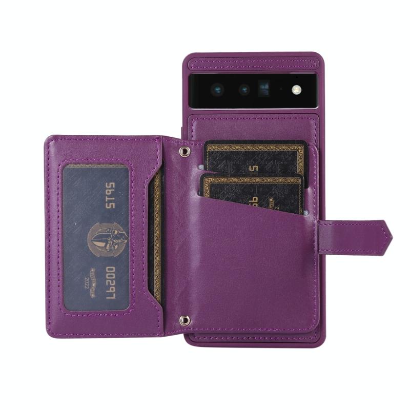For Google Pixel 6 Pro Horizontal Card Bag Phone Case with Dual Lanyard(Dark Purple)