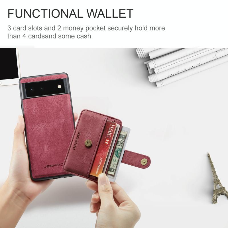 For Google Pixel 6 Pro JEEHOOD RFID Blocking Anti-Theft Wallet Phone Case(Red) (JEEHOOD)