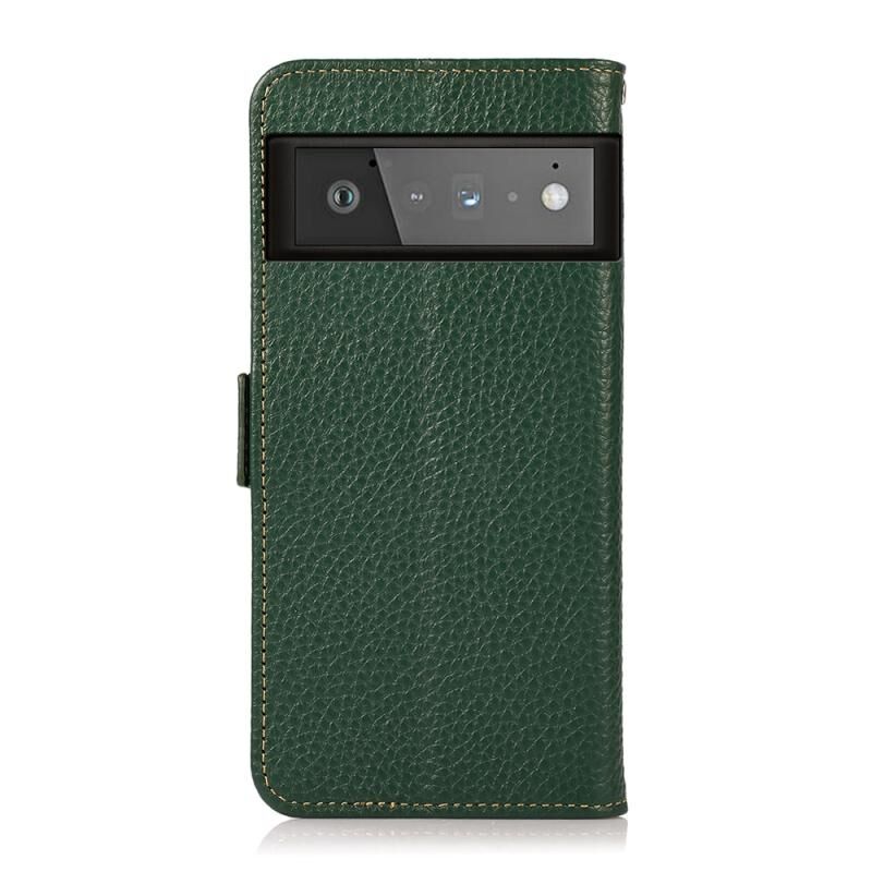 Θήκη KHAZNEH για Google Pixel 6 Pro με μαγνητικό κλείσιμο, από γνήσιο δέρμα Litchi και προστασία RFID (Μαύρο)