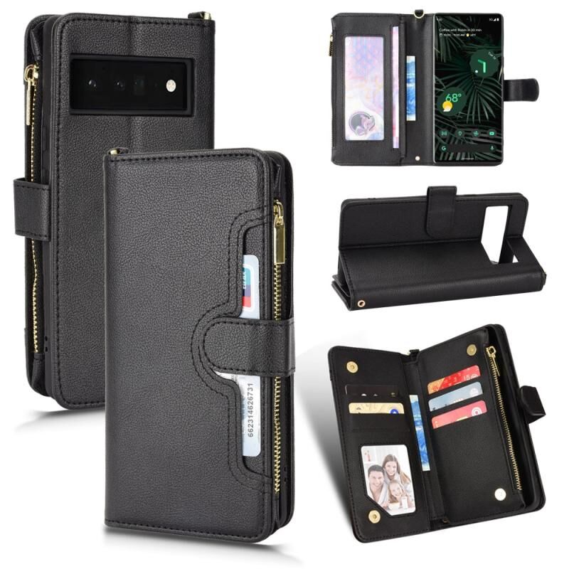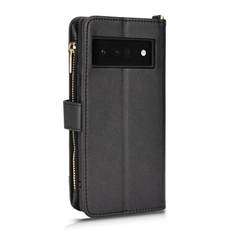 Για το Google Pixel 6 Pro Litchi υφή φερμουάρ δερμάτινη θήκη τηλεφώνου (μαύρο)