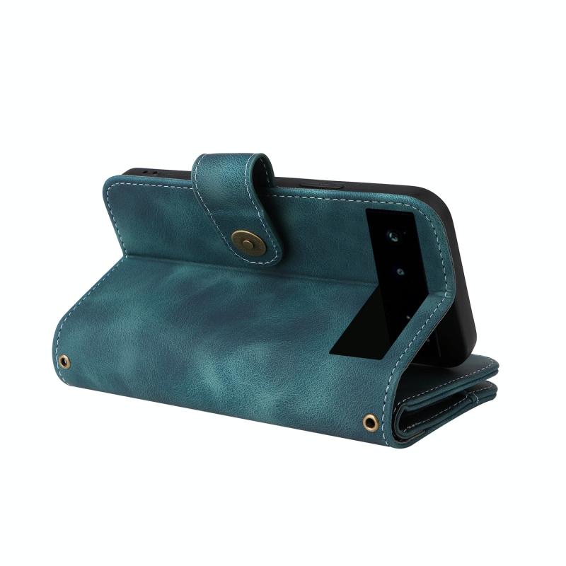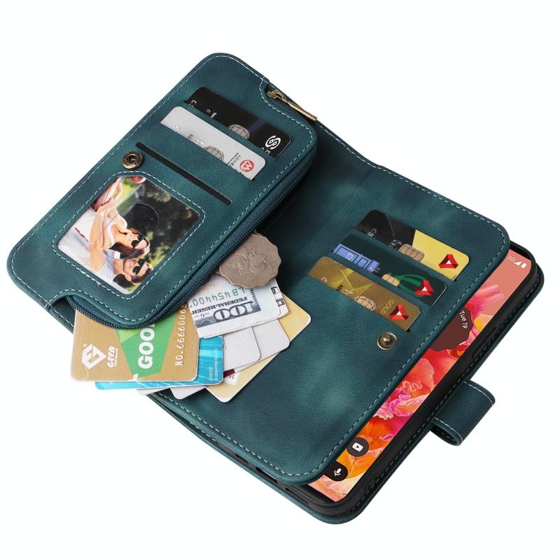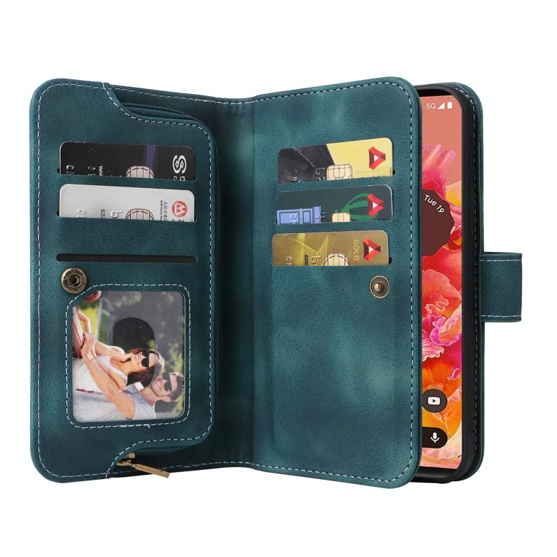 Θήκη τηλεφώνου από δέρμα με πολλαπλές υποδοχές καρτών και φερμουάρ για Google Pixel 6 Pro (Μπλε)
