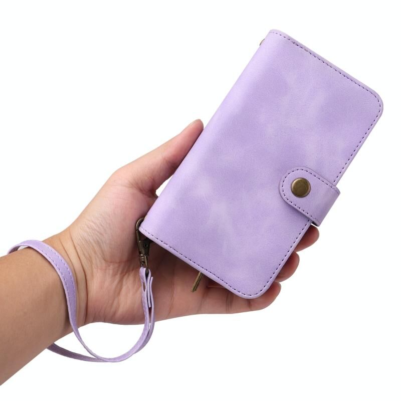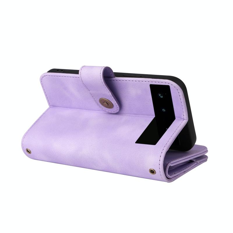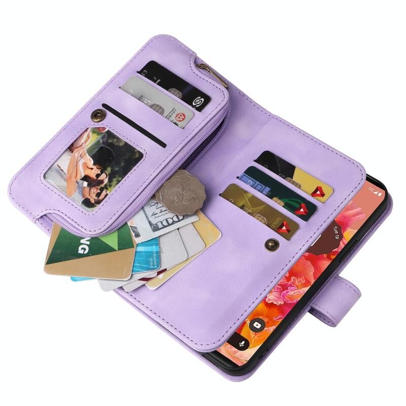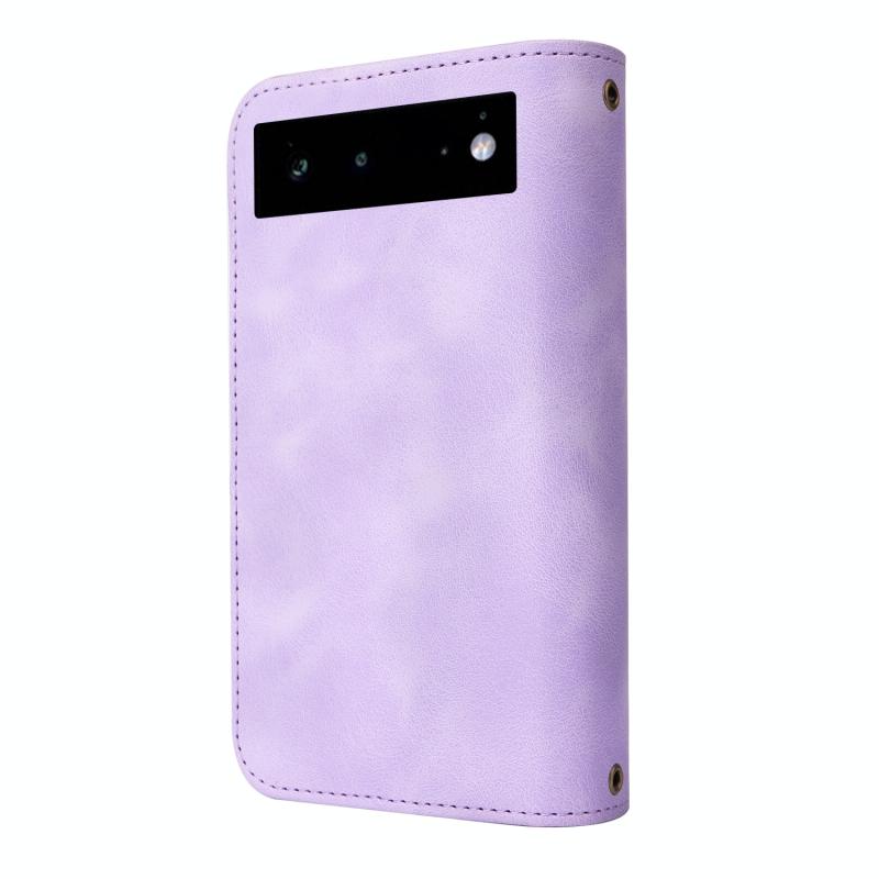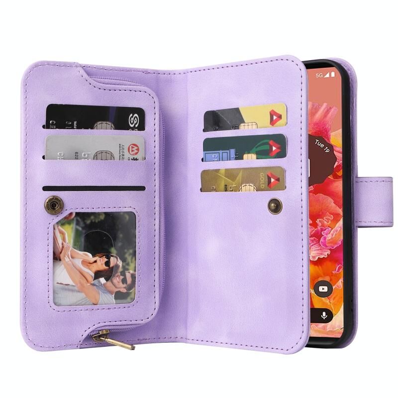 Θήκη τηλεφώνου από δέρμα με πολλαπλές υποδοχές καρτών και φερμουάρ για Google Pixel 6 Pro (Μωβ)