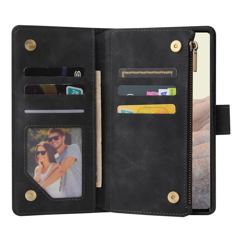 For Google Pixel 6 Pro Multifunctional Phone Leather Case with Card Slot & Holder & Zipper Wallet & Photo Frame(Black)