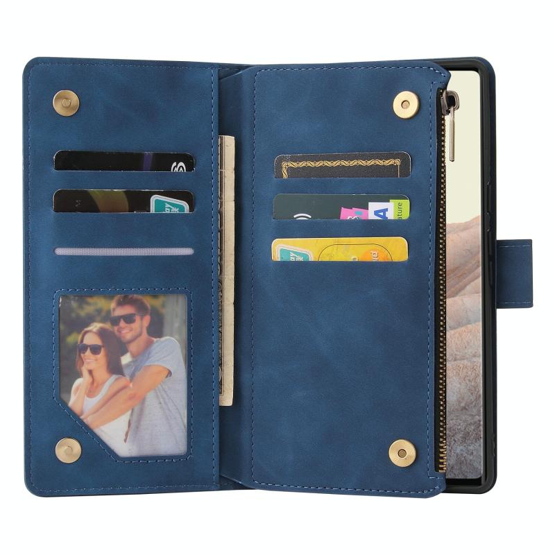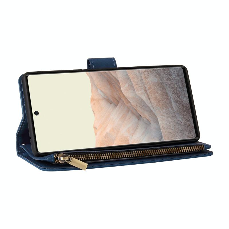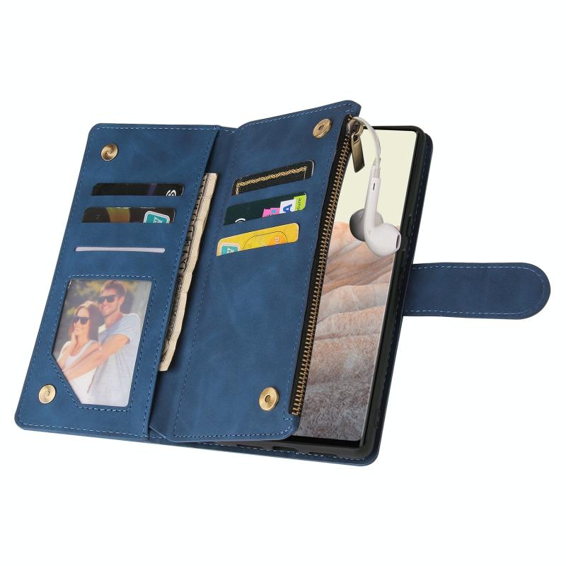 For Google Pixel 6 Pro Multifunctional Phone Leather Case with Card Slot & Holder & Zipper Wallet & Photo Frame(Blue)