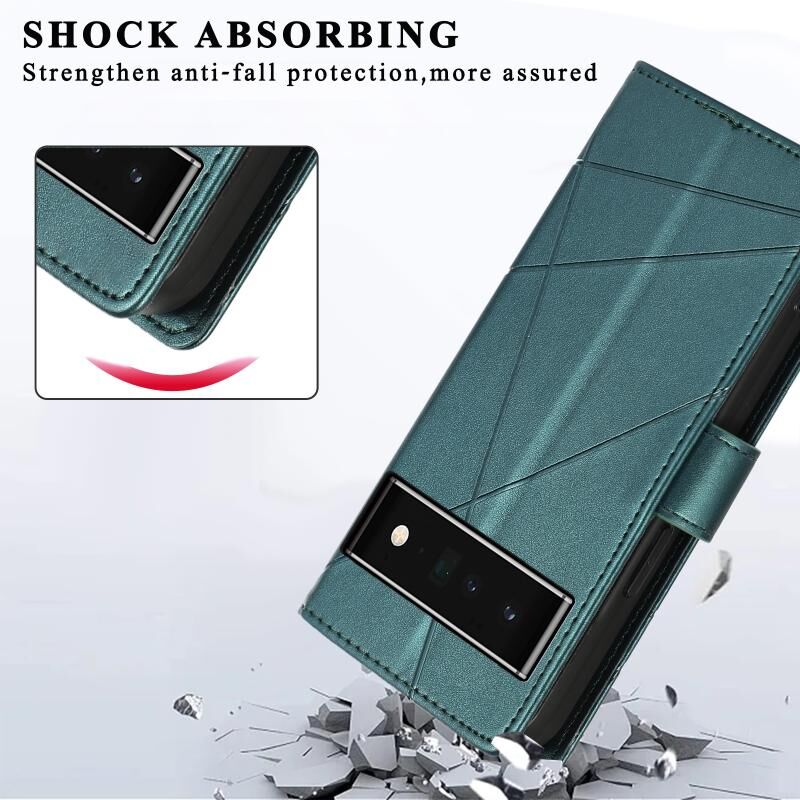 For Google Pixel 6 Pro PU Genuine Leather Texture Embossed Line Phone Case(Green)