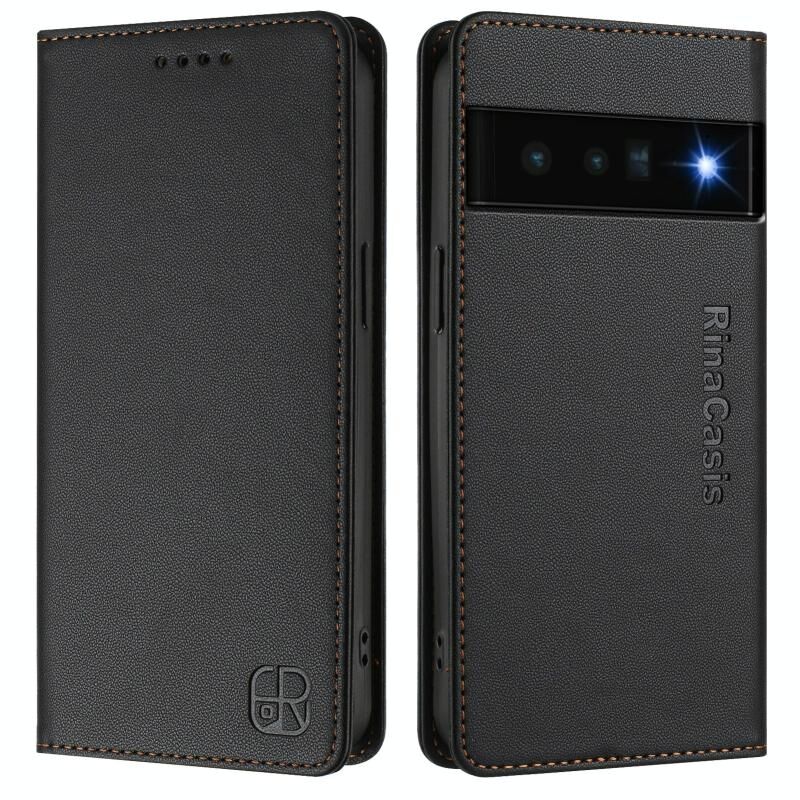 For Google Pixel 6 Pro RC01 Dual-Folded Magnetic Suction RFID Leather Phone Case(Black)
