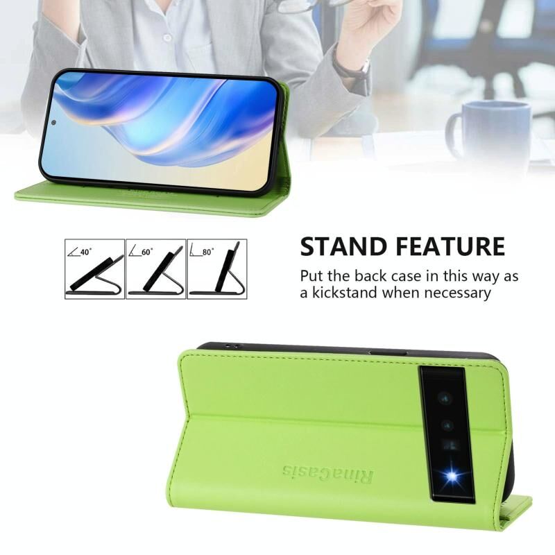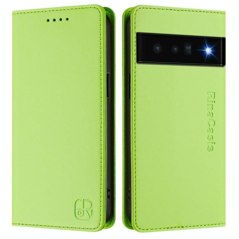 For Google Pixel 6 Pro RC01 Dual-Folded Magnetic Suction RFID Leather Phone Case(Grass Green)