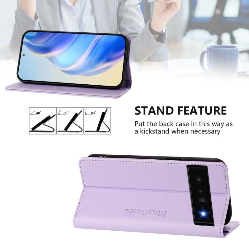 For Google Pixel 6 Pro RC01 Dual-Folded Magnetic Suction RFID Leather Phone Case(Light Purple)