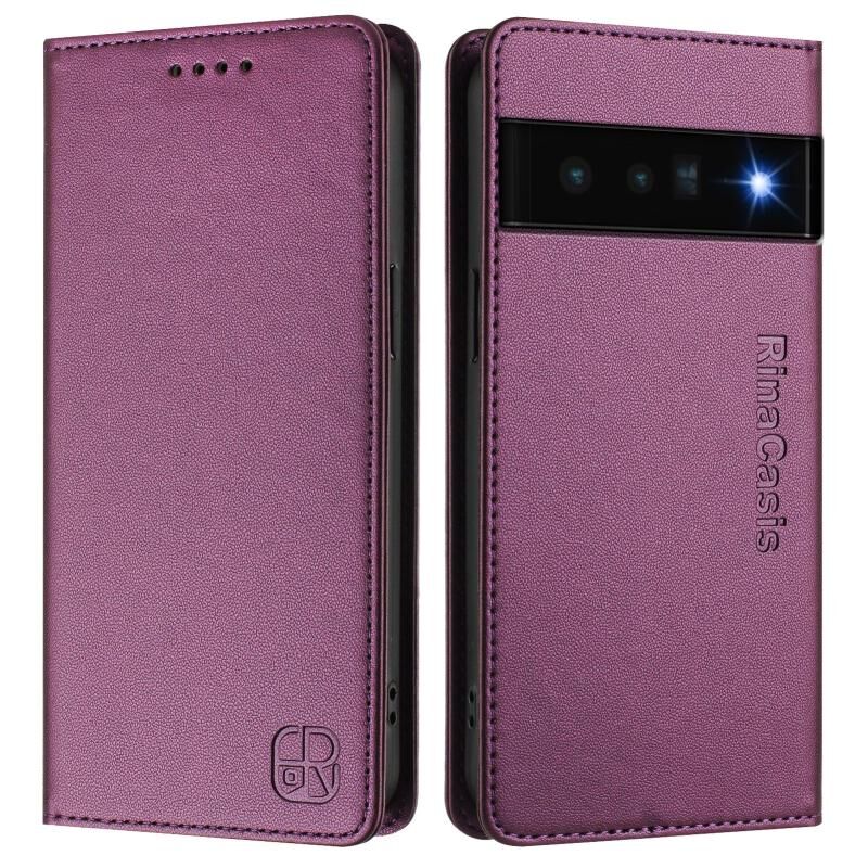For Google Pixel 6 Pro RC01 Dual-Folded Magnetic Suction RFID Leather Phone Case(Violet)