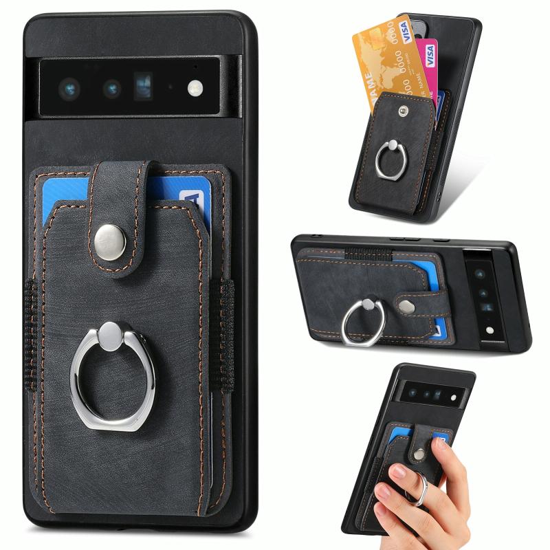 For Google Pixel 6 Pro Retro Skin-feel Ring Card Wallet Phone Case(Black)