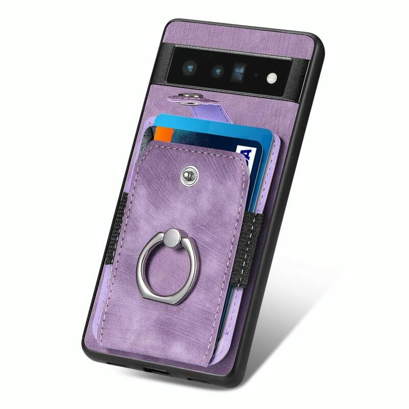 For Google Pixel 6 Pro Retro Skin-feel Ring Card Wallet Phone Case(Purple)