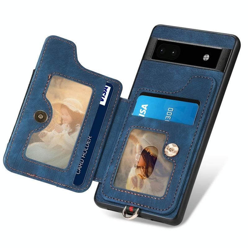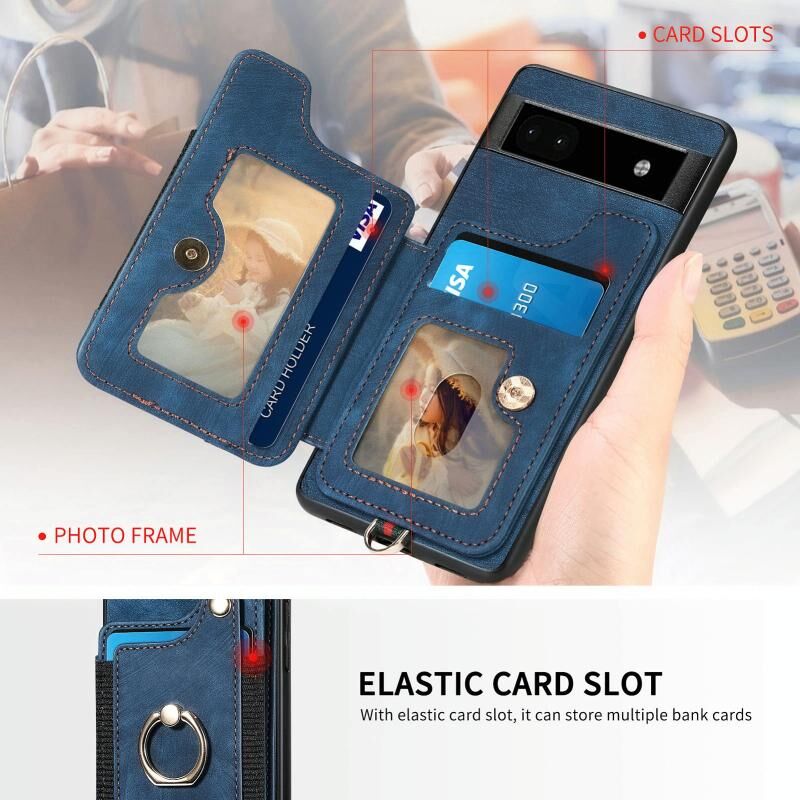Για το Google Pixel 6 Pro Ρετρό δέρμα αίσθηση δαχτυλίδι πολυ-κάρτα RFID πορτοφόλι υπόθεση τηλεφώνου (μπλε)