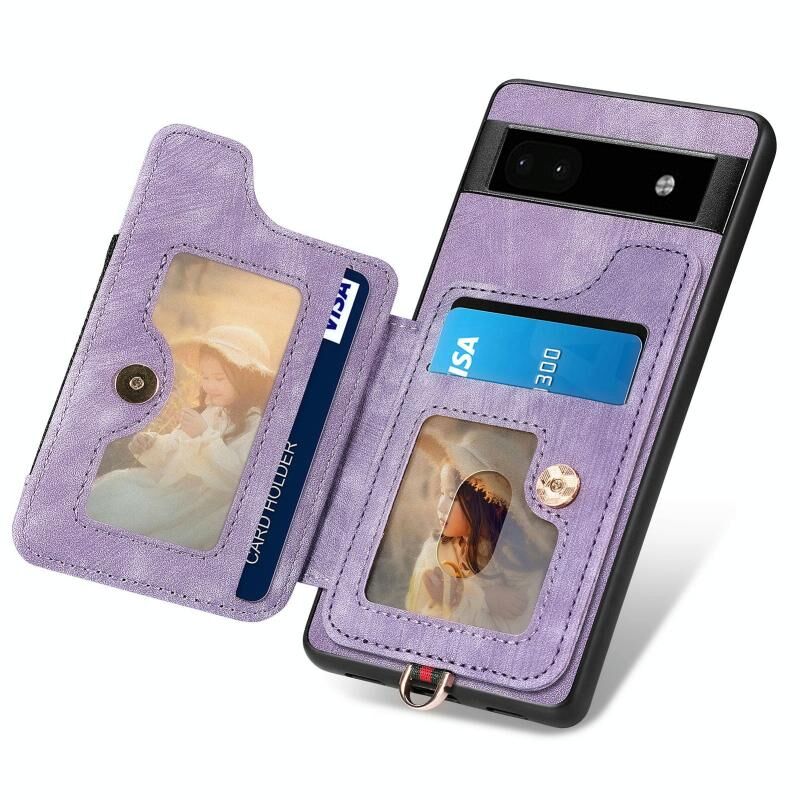 Για το Google Pixel 6 Pro Ρετρό δέρμα αίσθηση δαχτυλίδι πολυ-κάρτα RFID πορτοφόλι υπόθεση τηλεφώνου (μωβ)