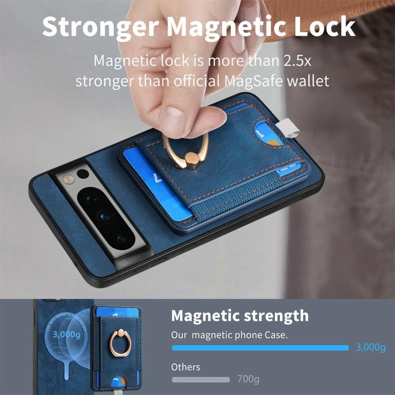 5. The leather wallet features strong built-in magnets that allow it to effortlessly snap into place on the back of your phone, easy to use and remove.