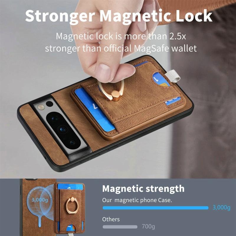 5. The leather wallet features strong built-in magnets that allow it to effortlessly snap into place on the back of your phone, easy to use and remove.